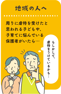 地域のみなさん・まわりの方へあなたの「気づき」と「行動」が小さな命を救います。